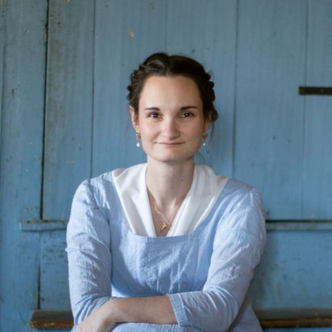 Alexis, her husband Austin, and their Great Dane Rytlock can be found every year at Mississinewa 1812 wearing many hats. Aside from serving as Treasurer, Alexis has helped with the Information Booth, posted for social media, helped build the Mississinewa 1812 website, run the participant registration booth, volunteered with the Merchandise booth, and so many more things than one person could count. At the event, Alexis’s setup and dress reflect a wealthy family who would be building a Federal-style home along one of the numerous waterways in the Northwest Territory. Additionally, Alexis and Austin love making period style signage and matching ironwork.